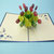 Carte pop-up avec un panier dans lequel se trouve des roses rouges et petites fleurs jaunes qui apparaissent en 3D à l'ouverture.